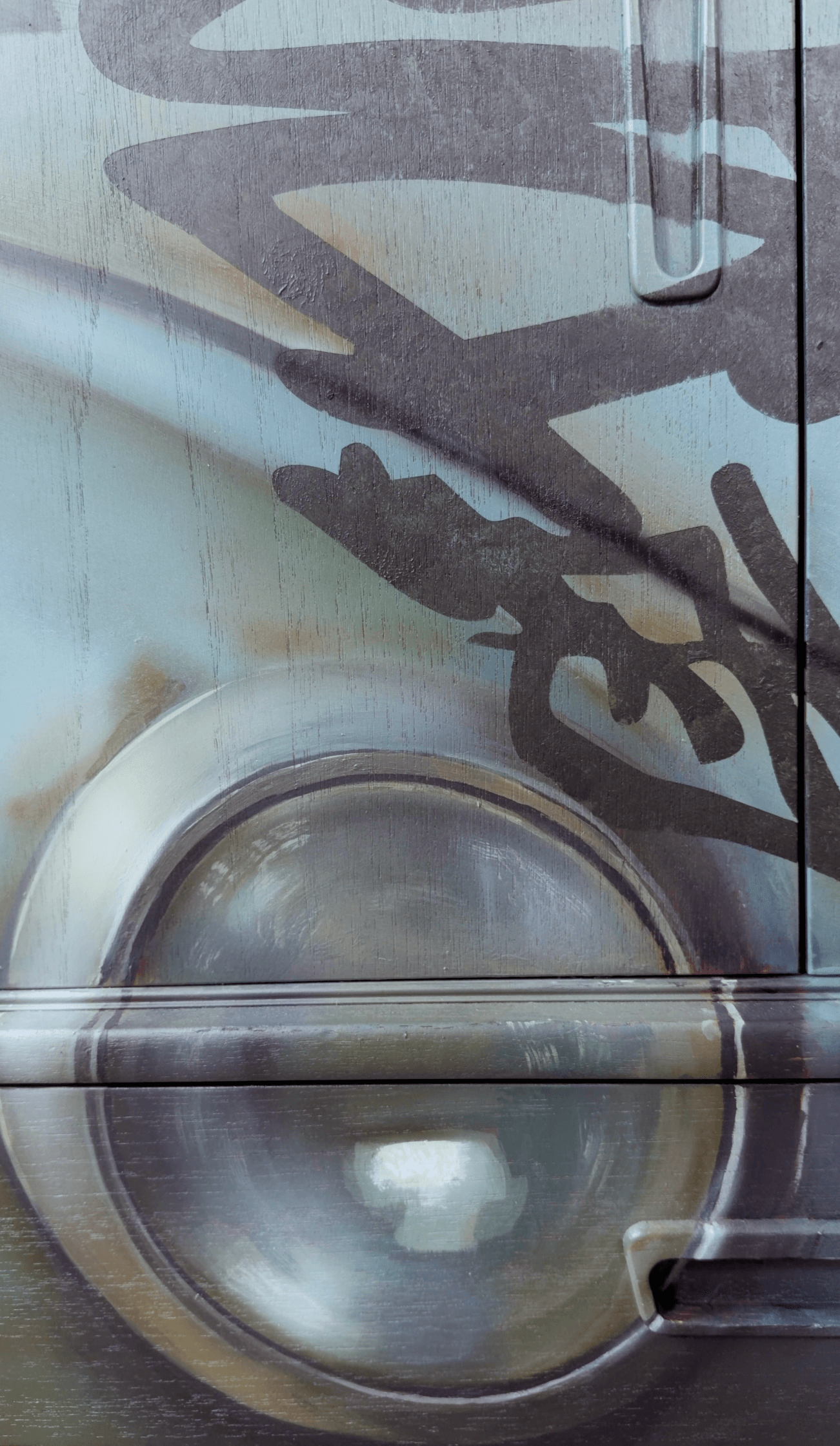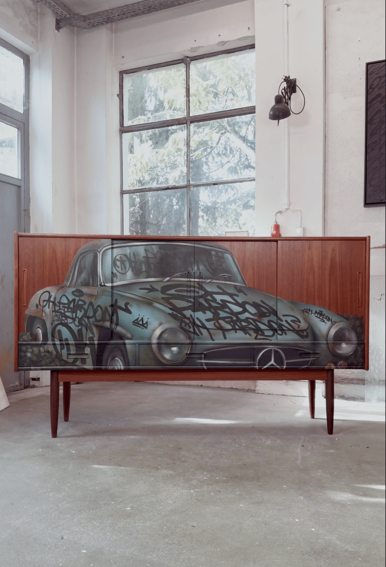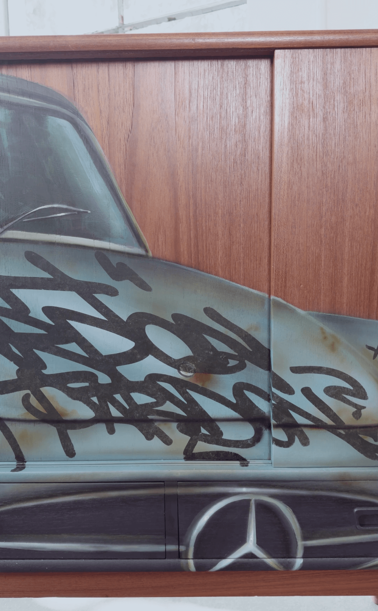 Erinnerungen in Acryl auf Teak Sideboard.